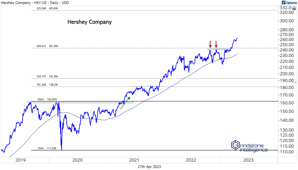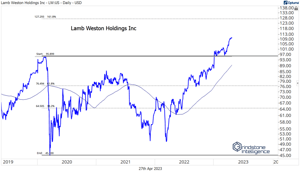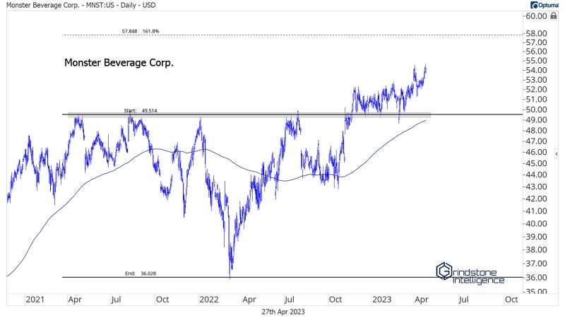 We’ve already been watching a handful of breakouts within the space. Lamb Weston, Hershey, and Monster Beverage all continue to progress toward our targets.