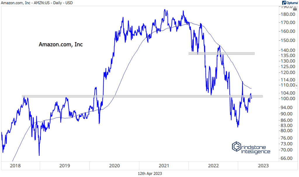 Let’s address the elephant in the room. Amazon alone accounts for nearly a quarter of the sector. Without the participation of this retail behemoth, Discretionary as a whole isn’t going anywhere. And frankly, there’s not much to get excited about when it comes to AMZN.