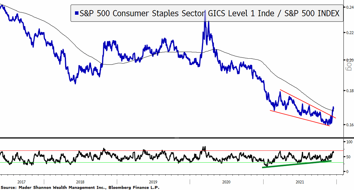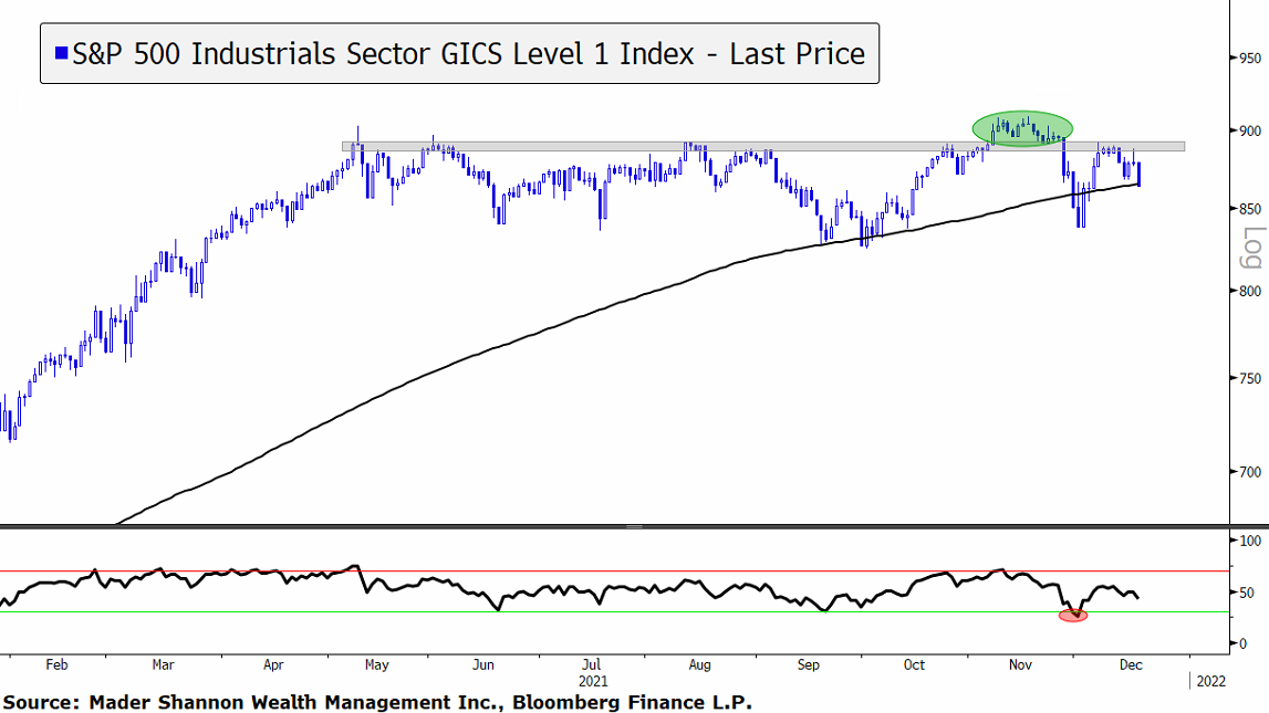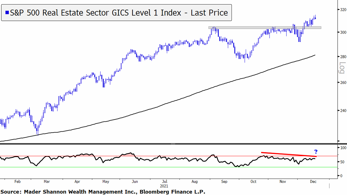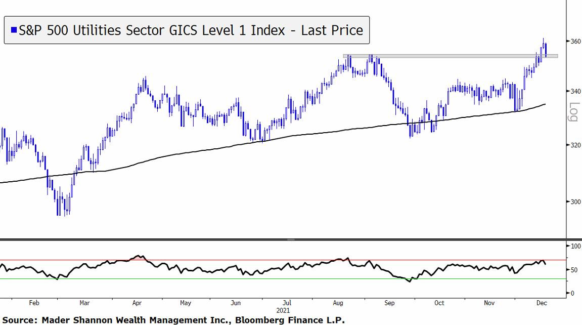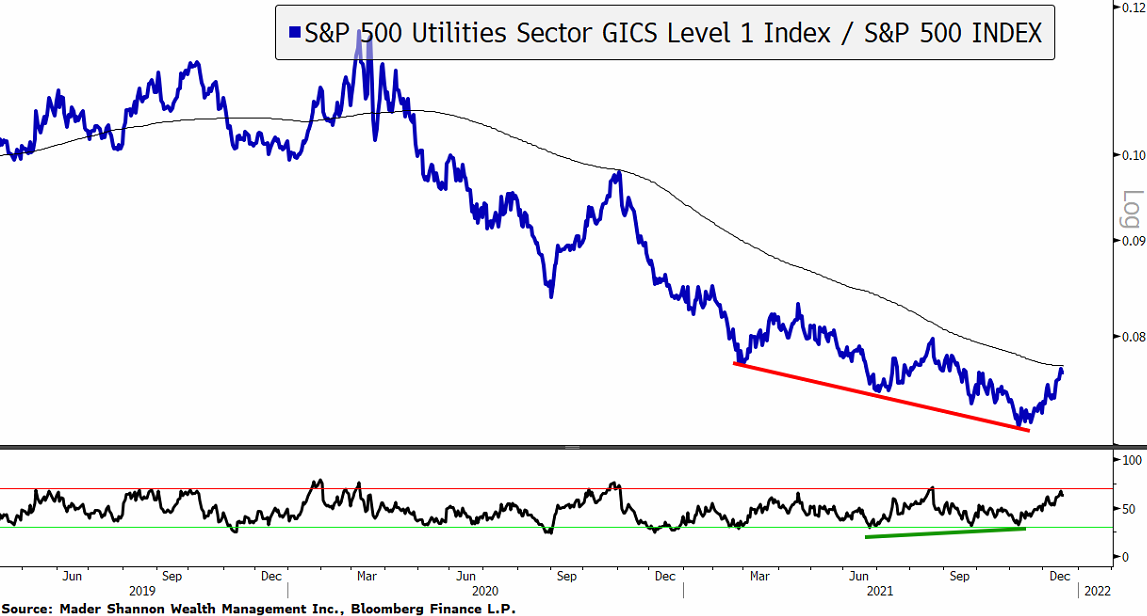 The Utilities sector looks similar, with momentum improving throughout 2021 and failing to get oversold on the most recent decline.