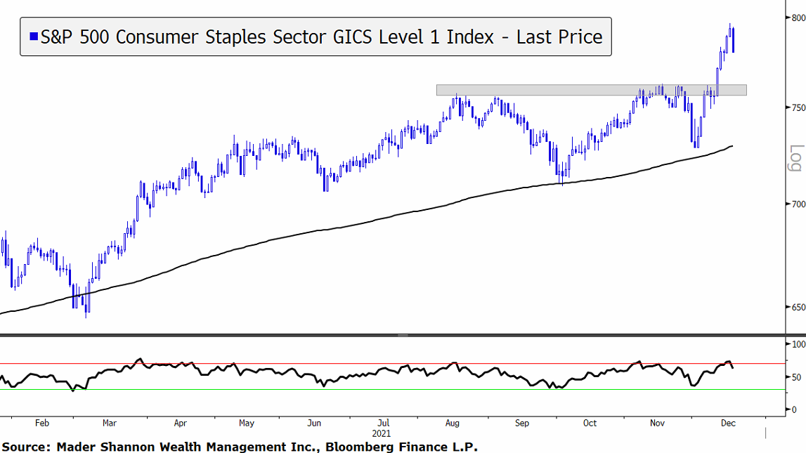 Consumer Staples have screamed higher, breaking through resistance created in August and October.