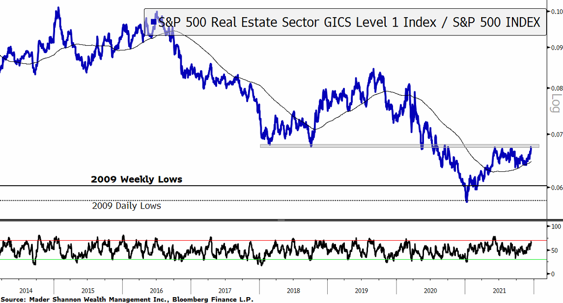 Real Estate set its low vs. the S&P 500 back in January at the exact same place it bottomed in 2009.