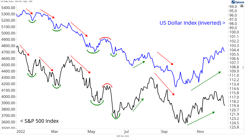 If you’ve been following Means to a Trend, you know the Dollar is the only thing that’s mattered in 2022. Each time the Dollar has set a new high, equity markets have dropped to a new low. When the US Dollar index finally peaked in September, the bottom in stocks wasn’t far behind.