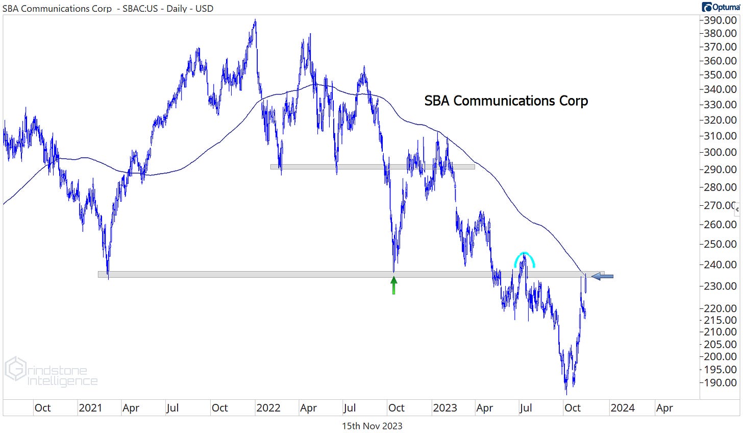 If this surge in Real Estate stock prices is just a mean reversion, then SBAC has done exactly that. It just kissed its 200-day moving average, which is, by definition, the mean. So if prices keep rising past the 200 and above the major lows from 2021-2022, then we’re no longer talking about a mean reversion. That would be something bigger.