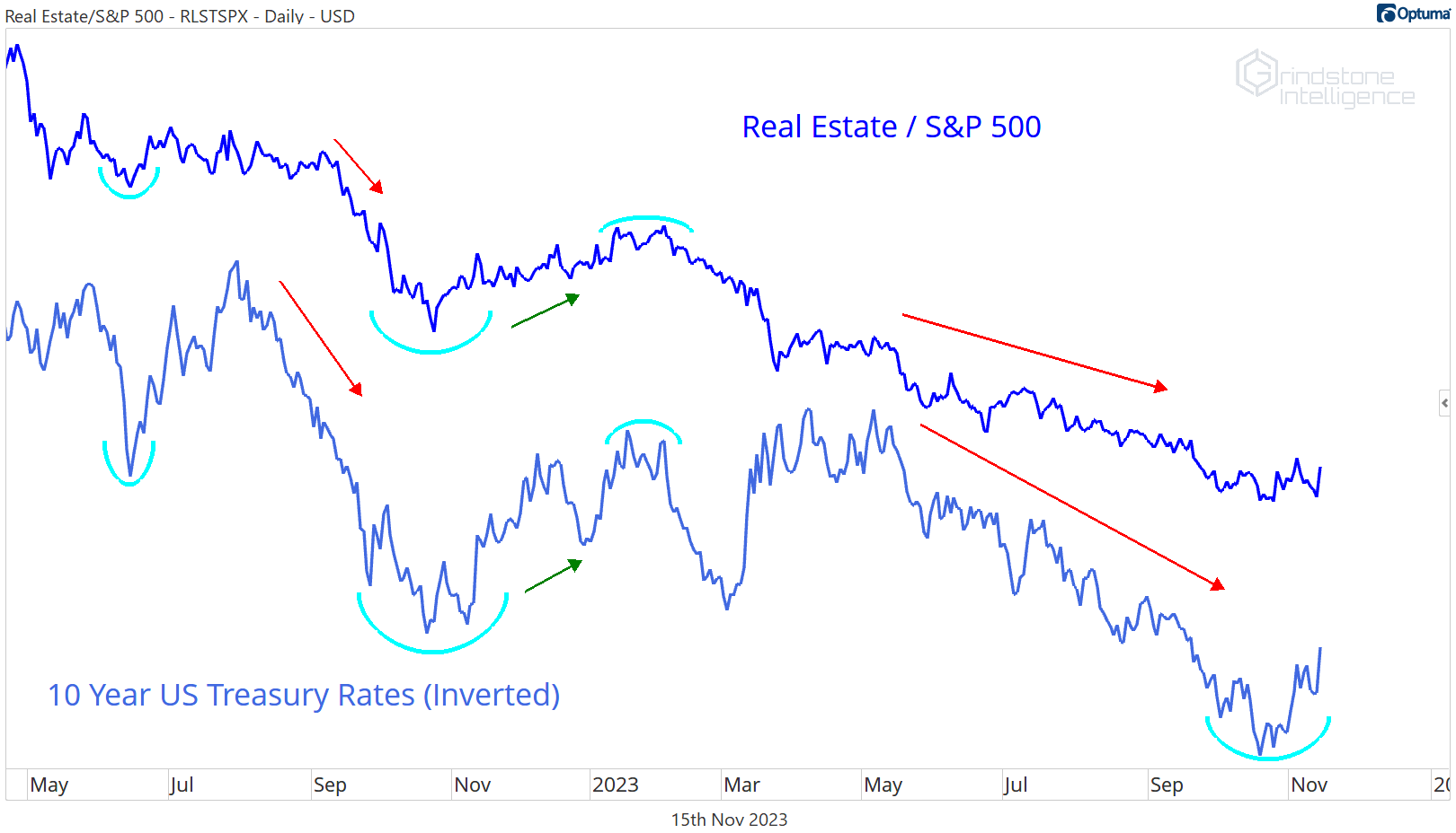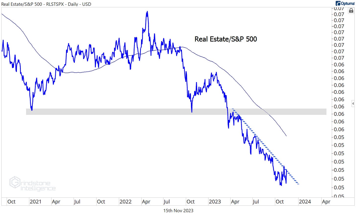 It’ll take more progress from interest rates and improvement beneath the surface before we’ll have much confidence in Real Estate as more than a short-term leader.