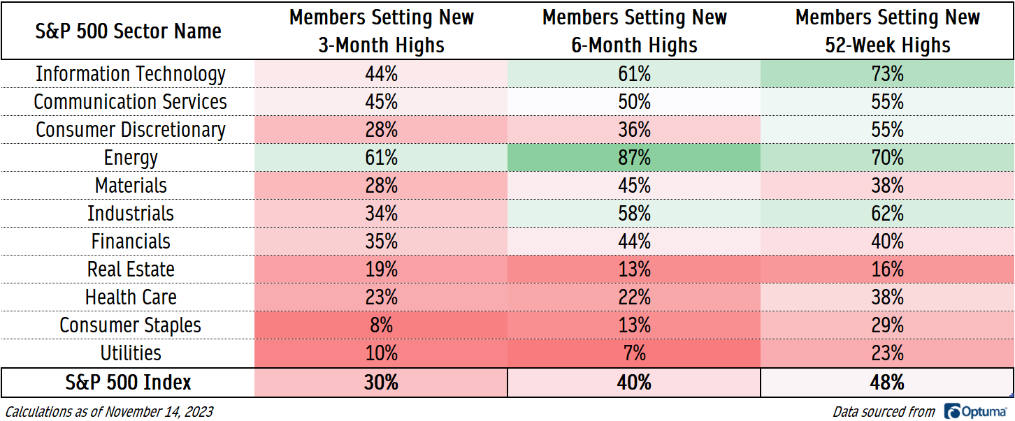 And fewer Real Estate stocks have set a new 52-week high than in any other sector, with 84% still stuck in a long-term, lower-lows regime. Perhaps it’s not fair to expect a bunch of new 52-week highs within a sector that just came out of a big failed breakdown, but shorter-term trends aren’t much better. Just 19% of the sector has so far managed to set a new 3-month high.