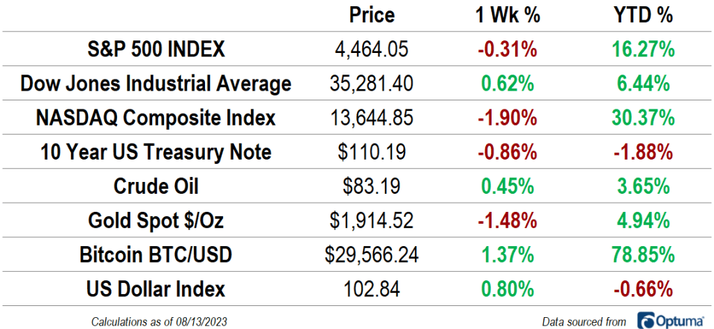 The selloff in growth stocks continued last week, driving the NASDAQ to its first back-to-back weekly losses of the year. The Dow Jones Industrial Average managed to close higher for the week, but it’s still the laggard of the large cap indexes in 2023. The US Dollar Index rose for the fourth straight week, as did long-term Treasury yields. Crude oil also continued its recent run, rising for the seventh straight week to end at its best level since November.