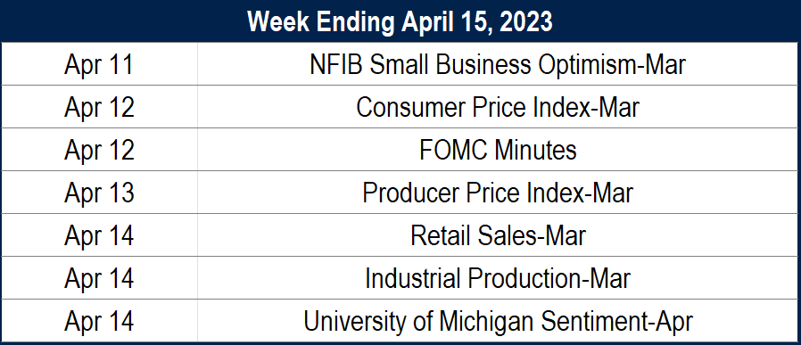 Economic data showed considerable softness last week, beginning with manufacturing PMI survey results that were at levels seen only during recessions over the past twenty years. The following day, job openings declined to the lowest level in nearly two years. Despite that, Friday’s jobs report revealed that hiring remained strong in March, and the unemployment rate dipped back to 3.5%. The Federal Reserve will need to weigh weakening activity against the threat of sustained inflation at their May meeting. Next week’s CPI report will play heavily into their decision.