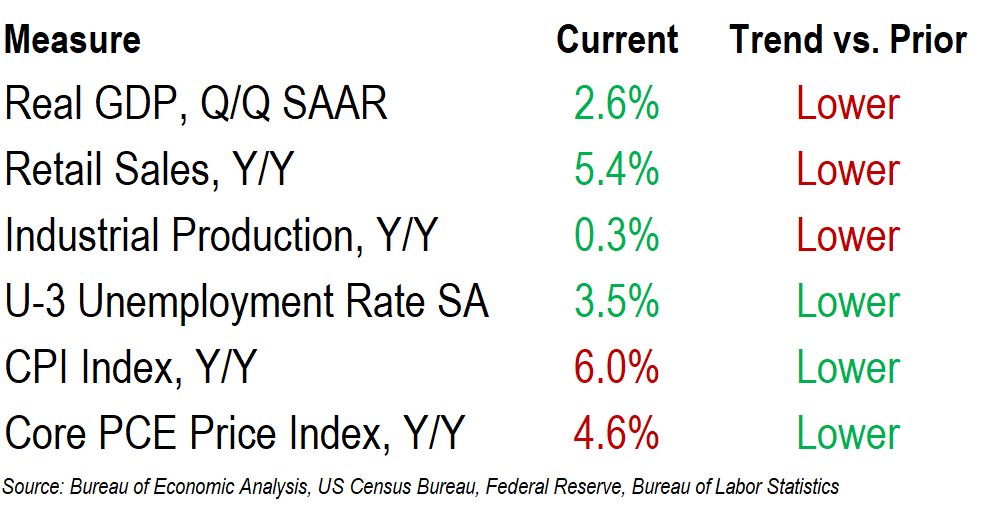 Measures of inflation remain well above the Federal Reserve’s 2% target, but CPI has decelerated for 7 straight months, and measures of core price changes have dropped below 5%. Unemployment, meanwhile, remains near 50 year lows, and job creation to start 2023 has been well above the level needed to keep pace with population growth.