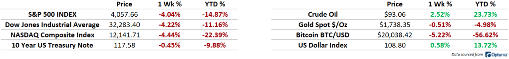 Equities entered Friday morning relatively flat for the week, but then took a slide during Friday’s session. The S&P 500 index, Nasdaq Composite, and the Dow Jones Industrial Average all declined more than 4%. US Treasury yields rose for the fourth straight week, with the 10-year rate rising above 3% for the first time since July 21. The Dollar index rose again, closing at a new high for the year and the highest since 2002. Gold fell 0.5%, while crude oil reversed last week’s losses, gaining 2.5%. Bitcoin declined 5.2%.