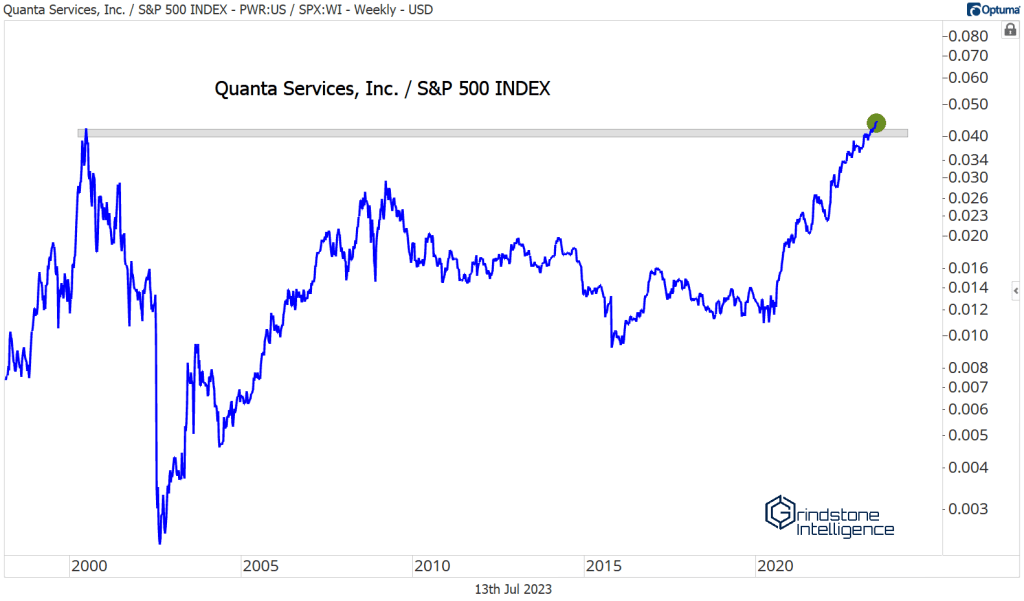 Quanta just broke out of a 20+ year base relative to the S&P 500.