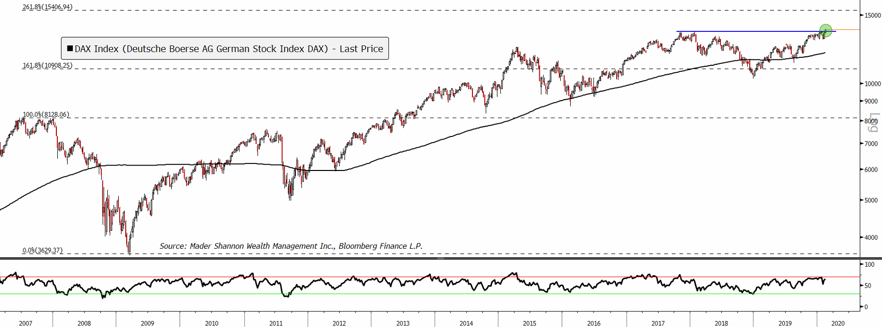 But unlike their EM counterpart, there are plenty of signs of life in the developed world. In Germany, even with the country’s economy teetering on the edge of contraction, the DAX just broke out above its 2017 peak. Friday’s weekly close was an all-time high.