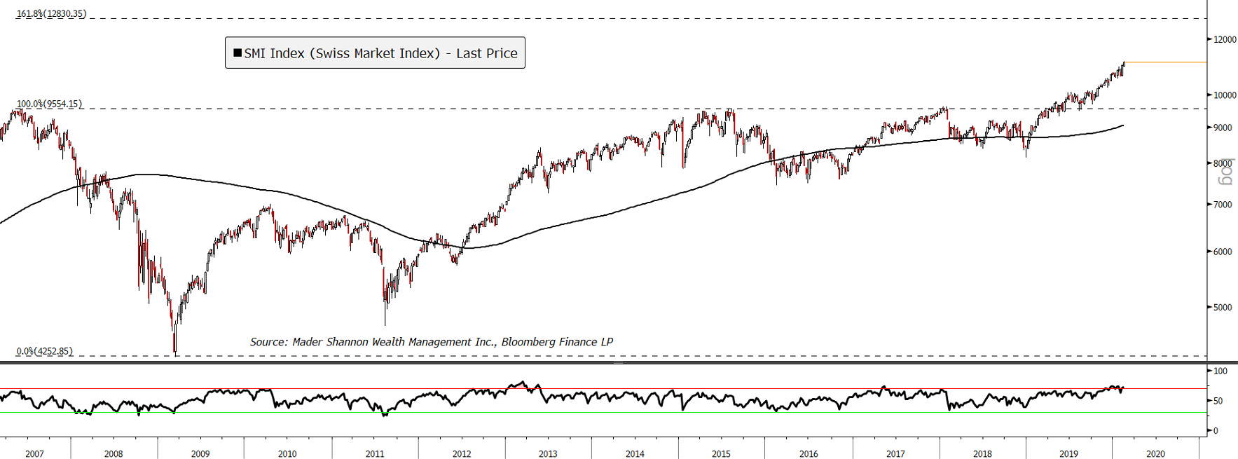 The Swiss Market Index was stuck below its 2007 highs for more than 10 years. After its first attempt in 2015, it took 3 more tries and 4 more years to break through all that resistance, but it hasn’t slowed down since. Friday’s weekly close was an all-time high.
